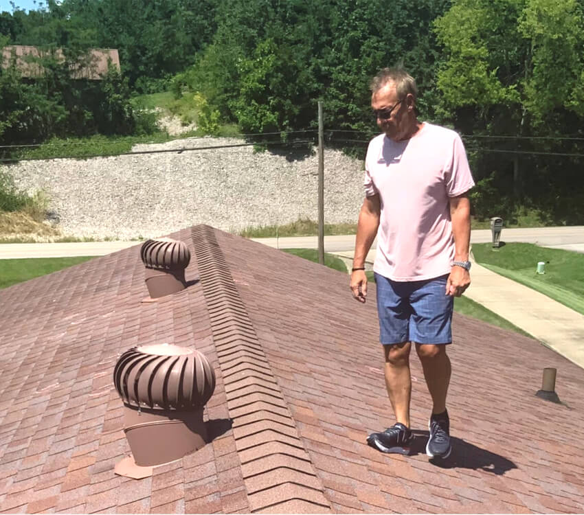 water stains on the ceilings, so he knew it was time for a